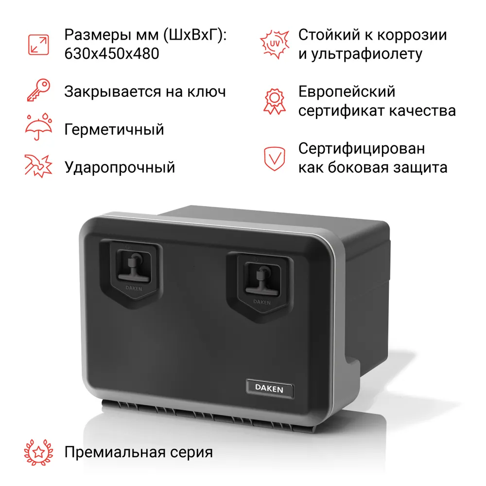 Серия WELVET - прочные и надежные ящики, изготовлены из высококачественного полипропилена - 4,0 мм, методом литьё под давлением. Линия WELVET - это эффективное решение для оснащения грузового и малотоннажного автотранспорта. Ящики устойчивы к высоким и низким температурам, пыле-влагонепроницаемый, устойчивы к UV лучам, пламени, горюче смазочным материалам. Утверждены VСА в качестве боковой защиты на транспорте. Оснащены - запатентованной запирающейся системой Europlex. Мах нагрузка 60 кг. Универсальный. Подходит для большинства малотоннажных автомобилей. Нередко ставятся на а/м Газель NEXT с длинной базой. Обратите внимание! Цена зависит от изменения курса валют, актуальную стоимость в день заказа уточняйте у нашего менеджера. Цена действительна при отгрузке с Москвы. В других городах цена может отличаться. Подробности уточняйте у менеджеров.